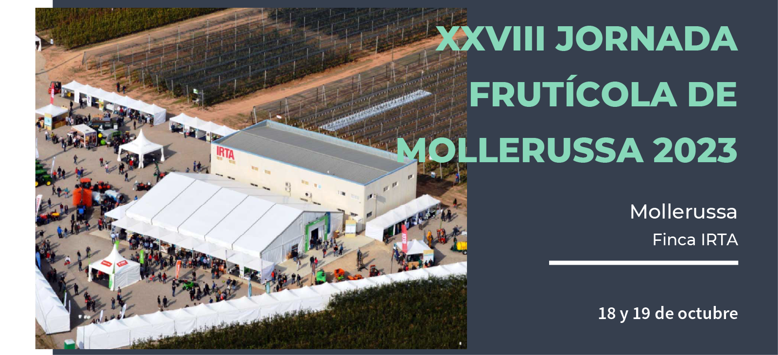 Nos complace informarte sobre nuestra participación en la XXVIII Jornada Frutícola de Mollerussa 2023, que se llevará a cabo los días 18 y 19 de octubre en Mollerussa.